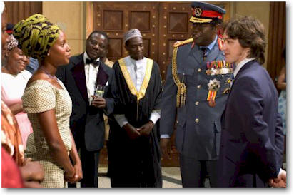 Unfortunately, The Last King of Scotland presents Amin as essentially that creepy, cartoonish persona we're already familiar with, rather than from a more complicated perspective. The problem undoubtedly emanates from the source material, since the picture is based on the historical novel of the same name written by Giles Foden, a Scotsman who was a child at the time that his subject was in power.