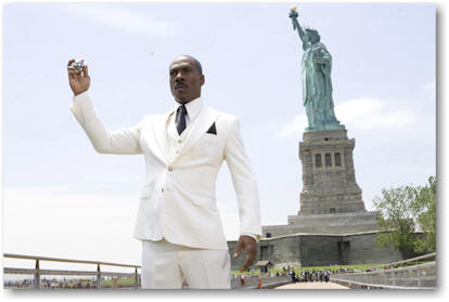 For example, Dave defecates dollar bills and sharpens pencils by sticking them up his nose. Plus, he can be very literal, such as the occasion on which he shoved everything to the floor when asked to clear the table. These eccentricities don't prevent Gina from developing a crush on innocent Dave, which simply cannot be reciprocated since he’s a machine after all. Forget the love story, this is a flick to be savored for its asinine slapstick, the sort of infantile poop and fart fare likely to keep the tykes in stitches for ninety minutes. Besides Brother from Another Planet, Meet Dave shamelessly steals bits made famous by a few other films, such as In and Out’s coming out scene (’I’m Dave Ming!’ instead of ’I’m gay!’), and Chris Rock’s unsuccessful hail of a taxi from Down to Earth (’What, an alien can't get a cab in this town?’ instead of ’I’m a black man again!’) All in all, this unoriginal, derivative disaster is the worst sci-fi comedy since, well, since Eddie Murphy made The Adventures of Pluto Nash. Related Links Dreamgirls (2006)- Reviewed by Michael Dequina Dreamgirls Movie Review by Kam Williams Eddie Murphy Interview on AALBC.com Norbit Film Review